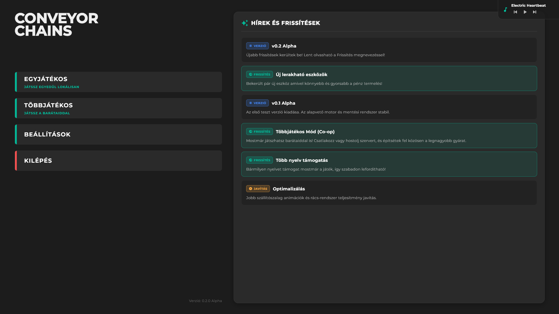 A Conveyor Chains egy 2D-s, felülnézetes sandbox gyárszimulátor, ahol a hatékonyság a kulcs. Kezdd egyetlen fúróval, és építs ki egy gigantikus, teljesen automatizált ipari birodalmat. A játék különlegessége a zökkenőmentes Multiplayer Co-op, ahol barátaiddal közös kasszán osztozva, valós időben építhetitek meg álmaitok gyárát.